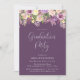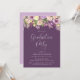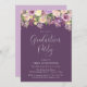 Convide convidados para comemorar o formando com nossos convites para festas de formatura Florais Roxo Radiante. O topo dos convites elegantes para festas de formatura exibe uma borda de rosas e lilases de aquarelas roxas elogiadas por flores amarelas e verde-esmagador. As palavras 'Festa de formatura' são apresentadas em uma fonte de script elegante com os detalhes de sua festa exibidos abaixo em um fundo roxo profundo.