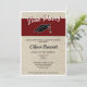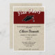 Convite à Festa de formatura Rústica de Formando Vermelho. Convite de graduação com boné de formatura sobre fundo vermelho escuro. O texto está sobre um fundo robusto. Personalize com seu texto.