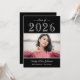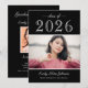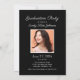 Convite de festa de formatura minimalista em uma paleta de preto e branco limpa com tipo moderno e um layout focado em fotos. Personalize o nome do graduado, escola, detalhes da festa e RSVP. Estilo nítido e atemporal que combina com qualquer cor da escola e imprime com beleza. Perfeito para uma celebração clássica e moderna.