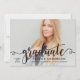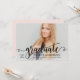 Deixe seu retrato de formatura brilhar com este convite de festa de formatura moderno com uma sobreposição de "formando" em caligrafia preta sobre uma foto. O verso rosa suave combina caligrafia e tipografia serifada para manter todos os detalhes da festa lindamente organizados. Texto totalmente personalizável em ambos os lados torna a personalização fácil.
