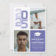 Celebre seu graduado com estilo com este convite temático universitário moderno. Com letras ousadas '2025', uma paleta de cores roxa e branca elegante e espaço para fotos pessoais, este design captura perfeitamente o espírito da ocasião. Ideal para festas de formatura do ensino médio ou faculdade, combina sofisticação com um toque esportivo. Personalize com seus detalhes para uma celebração memorável.