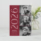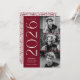 Convites de festa de formatura para 2025 com três fotos do formando localizadas à direita do design em um layout vertical. "2025" é apresentado em letras brancas, modernas de arte, com um fundo burgundy. Personalize o convite para festa de formatura de fotos moderno, adicionando o nome do formando e o nome da escola. A design reverte para exibir seus detalhes de festa de formatura com um plano de fundo geométrico burgundy e branco. Perfeito para segundos graus e formandos!