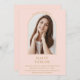 Apresentando um arco de ouro-chic em um fundo cor-de-rosa-pincelado, este convite para festa de formatura de na moda pode ser personalizado com sua foto de formando especial. Projetado por Thisnotme©
