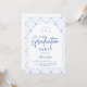 Um elegante design de celebração de formatura com uma delicada borda floral em toile azul inspirada em porcelana europeia clássica e impressões botânicas vintage. Os florais intricados enquadram um painel central arqueado limpo, criando uma composição refinada e atemporal que destaca o nome do formando e os detalhes do evento de forma linda. Tons suaves de azul contra um fundo marfim nítido dão ao design um toque sofisticado e comemorativo. Perfeito para uma reunião de formatura elegante com uma estética clássica e romântica.