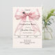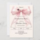 Celebre sua conquista com este convite de formatura elegante com laço rosa. O design apresenta um laço grande e sofisticado com fita adornada com cordões de pérolas delicados e um ícone sutil de capelo. É a escolha perfeita para estudantes do ensino médio ou universitários que buscam um anúncio feminino e chique. Fundo creme suave, marfim.
