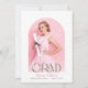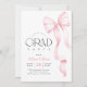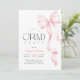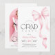 Celebre sua formatura com estilo convite de formatura com laço rosa. O design apresenta um belo laço rosa em aquarela com fitas fluidas, complementando perfeitamente o texto em letra cursiva moderna que anuncia o nome do formando e os detalhes da festa. Este convite é ideal para uma festa de formatura do ensino médio ou faculdade, adicionando um toque de sofisticação e charme ao seu evento especial. Faça da sua celebração de formatura algo inesquecível com este convite único e elegante.