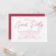 Convites de diversão e festas de formatura modernas com "Partido Formando" em um roteiro magenta de tendências com seus detalhes de festa de formatura mostrados abaixo. O convite simples de festa de formatura inverte-se para exibir um padrão geométrico magenta e branco pontilhado.
