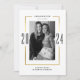 Convite simples de festa de formatura dupla. Design apresenta uma fotografia dos formandos enquadrados com uma falsa borda dourada, o(s) seu(s) nome(s), ano de classe, local de estudo. No verso está uma moderna coleção de fotos dos formandos e detalhes do evento.