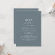 Este convite à festa de formatura azul mínimo e rústico da Coleção Emelia é perfeito para uma faculdade moderna ou para uma festa de formando segundo grau. A design minimalista apresenta uma tipografia simples, mas na moda, sobre cinzas de ardósia com ar de sofisticação moderna.