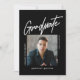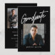 Comemore seu Formando com este Convite para Anúncio de Formatação de Foto do Script Moderno Black Three, projetado em preto e branco, com uma foto central e a palavra "Graduação" em um roteiro moderno. Este convite é perfeito para um formando masculino como o seu filho se formando na faculdade. Adicione mais duas fotos no verso e personalize este modelo com os detalhes da celebração na parte traseira do cartão. Escolha entre impressões e/ou um download digital instantâneo. Design original por Ana Garza/Kardz Studio Designs. Sinta-se à vontade para me contactar através do Bate-papo Zazzle se tiver alguma pergunta.