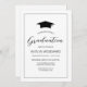 Este convite de festa de formatura simples e clássico apresenta um boné de conselho de argamassa silenciado em preto sobre um fundo branco. A palavra "Graduação" aparece no guião preto de escrita manual. Personalize o texto sans serif com o nome do formando e a parte detalha dentro uma borda fina de enquadramento preto.