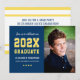 Celebre seu formando com este convite de festa de formatura ousado que apresenta números de ano em estilo de universidade superdimensionados e tipografia "Graduate" ao lado de um retrato de veterano. A frente combina "Parabéns ao nosso" em script com letras maiúsculas fortes para um sentimento espirituoso e comemorativo. A parte traseira apresenta um design listrado coordenado com todos os detalhes da sua festa. O texto totalmente personalizável torna a personalização fácil.