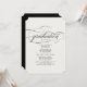O design apresenta uma fonte de script clássica com a palavra "Graduação" que faz o cabeçalho ficar em destaque e o resto da informação na elegante tipografia serif. O design está terminado no reverso com um fundo preto contrastante. Personalize com suas informações usando os campos modelo fornecidos. ***Se precisar de uma cor diferente ou de ajuda para personalizar ou peças adicionais, entre em contato conosco usando o botão de contato abaixo. Feliz em ajudar.