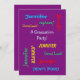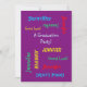 Que maravilhoso e divertido Convite à Festa de formatura! Na frente, seu texto se repete em diferentes fontes e cores em um plano de fundo roxo. É fácil modificar NOME e TEXTO na frente; também é fácil modificar o texto na parte traseira. Todos os Direitos Reservados © 2015 Marcia Socolik.