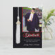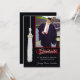 Convite de festa de formatura personalizado vermelho e preto. Adicione a data, o nome do formando e a foto à frente deste cartão de graduação e personalize as informações na parte traseira. Cartão desenhado por Rycky Creations; trabalho artístico original de punho branco; rabiscos deliciosos. Entre em contato com o artista para uma carta com as suas próprias cores escolares!