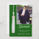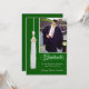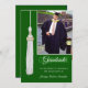 Convite de festa de formatura personalizado verde e branco. Adicione a data, o nome do formando e a foto à frente deste cartão de graduação e personalize as informações na parte traseira. Cartão desenhado por Rycky Creations; trabalho artístico original de punho branco; rabiscos deliciosos. Entre em contato com o artista para uma carta com as suas próprias cores escolares!
