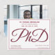 Um convite de festa de formatura de doutorado em burgundy e branco. Este convite inclui sua foto escolhida no verso. Basta adicionar sua foto e informações, adicionar este convite ao seu carrinho e celebrar esta grande conquista.