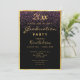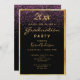 Um cartão de convite feminino e chic para uma festa de formatura 20xx. Glamorosa com elegante e moderno fundo negro e chuva roxa e cor-de-rosa confetti. Com uma falsa armação de ouro. Modelo para detalhes de nome e festa. O texto Graduação e o nome são escritos com um script de estilo manuscrito moderno. Ouros. Fundo preto com chuva de confete rosa e roxo.