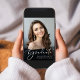 Comemore suas conquistas de formando com este elegante anúncio de graduação em preto e convite de festas. A foto favorita do formando preenche a frente da placa com "Formando" colocado em cima em um roteiro branco na moda; abaixo, adicione seu nome, escola e ano de aula. No verso, adicione uma fotografia adicional e os detalhes da sua festa de formatura em letras brancas simples.