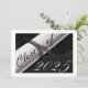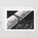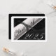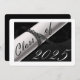 Cartão de festa de formatura preto e branco com diploma e ano de graduação. A parte de trás é um fundo preto com letras brancas para os convites de festa de formatura.