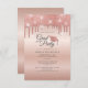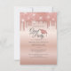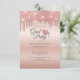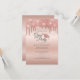 Festa de formatura 2022, Rosa Formando Dourado Glitter Convite. Você pode personalizar isso facilmente clicando no botão "Personalizar". Apresentando um moderno design de gotejamento brilhante e boné formando com roteiro e tipografia popular.