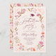 Cartão de convite à festa de formatura Whimsical com ilustração desenhada à mão de flores silvestres prados a cor rosa.