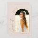 Comemore sua graduação com um convite moderno e simples para a festa de formatura. Este design apresenta um arco elegante com foto, perfeito para mostrar o formando ou um momento memorável. Adicione outra foto e detalhes da festa no verso. Diga aos seus amigos e familiares que a sua celebração especial de formatura está chegando e compartilhe as notícias com orgulho!