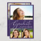 Um convite à festa de formatura roxo moderno, com uma colagem de 3 fotos do formando sobrecarregado com "Formando" em uma elegante escrita branca, e seu nome, ano de aula e escola em letras brancas limpas. No verso, adicione uma foto adicional e personalize os detalhes do seu partido.