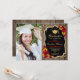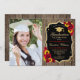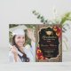 Festa de formatura com sua foto. Apresenta padrão de madeira, fonte de script, girassóis, rosas vermelhas, tassel e confetti. Design vermelho-branco-preto russo com ouro brilhante falso. Perfeito para uma celebração elegante.