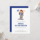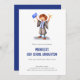 Convite ilustrado por festa de formatura com a ilustração de uma adolescente na sua ou na sua região azul marinho. Ilustrada e projetada por Patricia Alvarez.