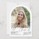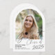 Chamada de caligrafia elegante de caligrafia de chic, segundo grau de modelo de de de de faculdade ou universidade, simples minimalista em arco, com formando, foto personalizada e texto. Fácil de personalizar de ambos os lados.