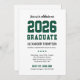 Anuncie seu formando de segundo grau em estilo com este anúncio de graduação e convite de festas. Um cartão de dois lados apresenta um design simples e masculino com uma carta inspirada em jersey desportiva, perfeita para o seu estudante e atleta de varSIDADE. Preto, branco e cores escura esmeraldas verdes. O espaço para incluir uma foto de mais velho do formando está incluído no verso. Todas as cores podem ser personalizadas para coordenar com as cores da escola ou da festa!