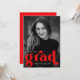 Convites de festa de formatura em negrito com a fotografia vertical do formando com "formando" em letras vermelho a negrito. Personalize os convites para festa de formatura de fotos adicionando o nome do formando, o ano de graduação e a escola. A festa de formatura vermelha convida ao contrário para exibir os detalhes da sua festa.