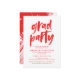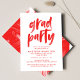 Convide convidados para comemorar o formando com nossos convites para a festa de formatura moderna! Os convites de festa de formatura de tendência apresentam "parte formando" em uma fonte de pincel pintada vermelha. Personalize os convites para festas de formatura criativas adicionando o nome do formando, o nome da escola, o ano de graduação e os detalhes da festa de formatura. Os convites, ao contrário, mostram um design de pincelada vermelho e branco.