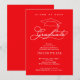 Um boné de formatura e a palavra "formando" em um roteiro elegante e branco PLUS o nome e o ano do seu formando e suas informações sobre esses convites de festa de formatura vermelha. CONSULTE TODA A RECOLHA de cores pré-feitas, placas de papel, guardanapos, tampas de bonés de formando e muito mais em nossa loja.