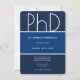 Um convite para festa de formatura de doutorado. Este convite minimalista tem um esquema de cor azul e branco. Todas as palavras e cores podem ser personalizadas.
