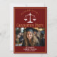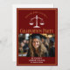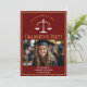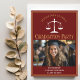 Este convite de festa de formatura de marrom e dourado da escola de direito personalizado apresenta tipografia clássica para uma classe de formando 2025 acima da foto de seu aluno. Personalize com o seu ano de graduação sob as escalas brancas de justiça e fotografia para um advogado personalizado excelente ou um convite de advogado.