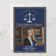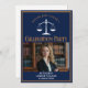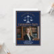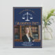 Este convite para festas de formatura de marinho azul-chic e ouro personalizado de direito na escola apresenta tipografia clássica para uma classe de formando 2025 acima da sua foto de estudante. Personalize com o seu ano de graduação sob as escalas brancas de justiça e fotografia para um advogado personalizado excelente ou um convite de advogado.