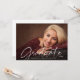 Simples convite para festa de formatura de fotos elegante com uma elegante camada de FORMANDO de script manuscrito em branco com seu nome de formando e ano de classe na frente. Sua convite de festas está atrás. DICA DA FOTO: Escolha uma foto com o assunto no meio e/ou pré-recorte-a para uma forma semelhante ANTES de carregar e usar a ferramenta CROP para ajustar a imagem dentro da área do modelo. ASSISTÊNCIA: para obter ajuda com a modificação/personalização do design, alteração de cor, transferência do design para outro produto ou, se você quiser coordenar itens, entre em contato com o designer ANTES DE ENCOMENDAR através da guia MENSAGEM de bate-papo Zazzle ou por e-mail em makeitaboutyoustore@gmail.com.