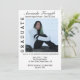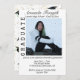 Anuncie a conquista do seu graduado aos amigos e familiares com este convite de festa de formatura elegante. Ele apresenta um modelo para adicionar uma foto do seu graduado na frente e você personaliza com o nome dele, nome da escola e ano de conclusão no topo. Abaixo da foto, você personaliza com todas as informações da sua festa com o modelo fácil de usar fornecido. O verso tem um padrão de boinas de formatura espalhadas e brilho de folha dourada por toda parte para um clima de festa divertido.