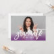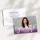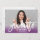 Celebre a formatura com um convite de festa de formatura moderno com uma foto full-bleed, “formado” em negrito com escrita a pincel branca e um degradê de cor roxa fresca. Uma personalização limpa e minimalista destaca o nome e o ano de formatura sem bagunça. O verso inclui um layout branco coordenado com texto de título roxo correspondente para os detalhes da sua festa. Fácil de personalizar.