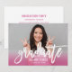 Celebre a graduação com um convite de festa de graduação moderno com uma foto de sangria total, “graduado” em negrito com escrita à pincel branca e um degradê de cor rosa na moda. A personalização limpa e minimalista do nome e do ano de turma mantém o foco na foto. O verso inclui um layout branco coordenado com texto de título rosa correspondente para detalhes da festa. Personalize toda a redação.
