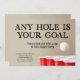 "Qualquer buraco é o seu objetivo". Um convite engraçado de beer pong para os ousados e os bêbados. Perfeito para uma festa de fraldas para o futuro papai.