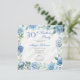 Azul e branco elegantes com o design de celebração de festa de aniversário de festas de imagens florais verde-cinzento.