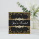 Modelo de convite de festa formal de gala preto e dourado. Este lindo convite de festa preto e dourado é facilmente personalizado para o seu evento, bastando clicar no botão "Personalize!" para começar a adicionar os detalhes do seu evento, estilo de fonte, tamanho e cor da fonte e texto. Por favor, note que todos os adesivos, cartões e desenhos de convites que você encontrará no Zazzle são gráficos impressos sem joias, laços, relevos, rebaixos ou peças adicionais.