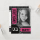Um design de pokadot padrão preto e na moda, muito moderno, que funciona bem com fotografias pretas e brancas de sua filha celebrando seu doce décimo sexto ou qualquer outro aniversário! Este design apresenta bandas coloridas cor-de-rosa-forte, texto de letras grandes em bloco e um padrão de impressão de bolinhas preto branco selvagem para que a parte mais importante da página seja desenhar de atenção - sua aniversariante favorita! Convide todas as amigas dela para uma celebração especial de aniversário com este cartão bonito feminino, de alta moda e de moda.