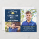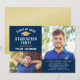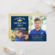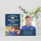Celebre seu graduado com um estilo moderno com este convite de festa de graduação que apresenta um layout azul marinho ousado, um ícone de chapéu de graduação dourado e dois espaços para fotos para um retrato de formatura e uma imagem extra. A tipografia limpa destaca “Festa de Graduação”, o nome e o ano de formatura. Ideal para uma casa aberta ou celebração em casa e fácil de personalizar.