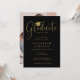 Este convite de festa de graduação com elegante letra preta e dourada pode ser personalizado com os detalhes da sua celebração e foto no verso. Criado por Thisisnotme©