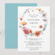 Este design apresenta uma delicada coroa de aquarela feita de flores silvestres em tons de azul, vermelho, laranja, violeta e dourado.