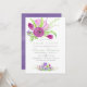 Convites de festa de graduação de primavera com aquarela botânica com tendências ultra violeta, ameixa e acentos verdes de sage. As flores apresentadas são ranunculus, tulipas, violetas e crocos com uma forte influência chinesa impressionista.